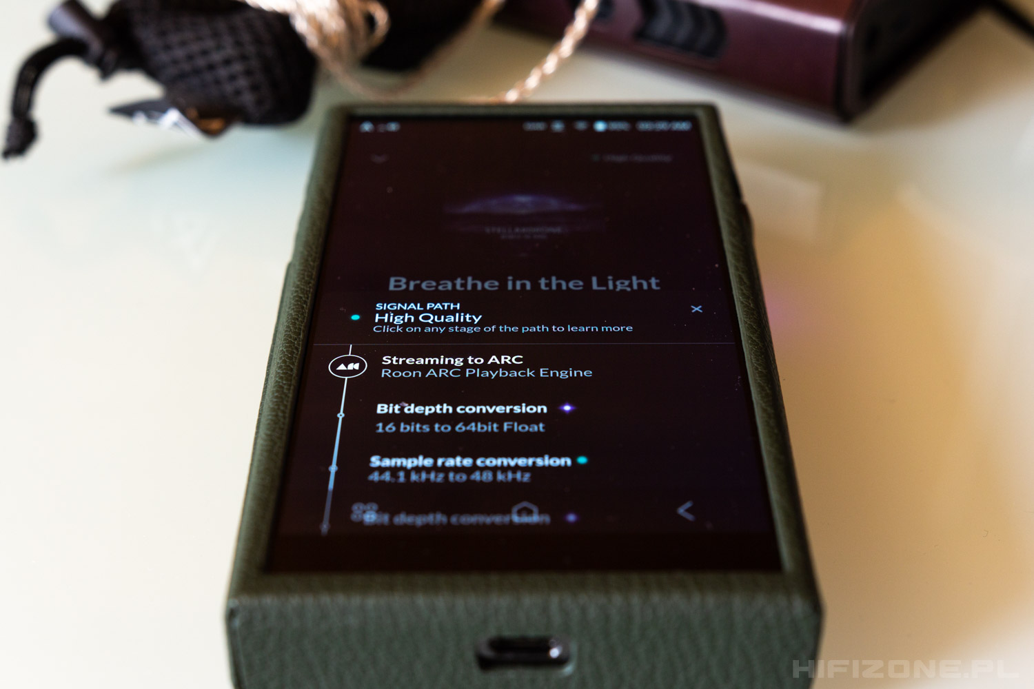Do kompletu z aplikacją Roon ARC mamy także wspomnianą funkcjonalność Roon Ready. Działa ona bez zarzutu i widać przy tym, iż urządzenie komunikuje się z programem w sposób dwukierunkowy. Bo przykładowo przy uruchomieniu funkcji DAR (Digital Audio Remaster) – odpowiednio zmieni się nam rozwijana zakładka informująca o ścieżce sygnału („Signal Path”, w tym akurat przypadku w Roonie będzie występować, jako „Enhanced”). No i właśnie – wspomniany powyżej DAR to kolejna ciekawa rzecz, jaką Astell w SP3000 zaimplementował. I to też funkcjonalność, która w pewnym sensie pokazuje, w jaką stronę będą szły lepsze – a już w szczególności aspirujące do hi-endowych – przenośne odtwarzacze audio. Otóż mamy tutaj możliwość konwersji w locie sygnału PCM 16bitów/44.1kHz albo do formatu DXD (32bity/352kHz), albo do formatu DSD128. Podobną funkcjonalność wprowadził swego czasu taki producent, jak FiiO (tam funkcja ta nosi nazwę „All to DSD”). Jednakże Astell daje nam tutaj możliwość wyboru docelowego gęstego formatu, którym będzie albo sygnał PCM, albo DSD. Innymi słowy, mamy nie jedną, a dwie opcje modyfikacji, zmiany brzmienia. Przy czym pomijam tutaj techniczne uzasadnienie takiego procesu, bo to temat na zupełnie inną historię. Natomiast trzeba tutaj zaznaczyć, że możliwość upsampligu zarówno do DSD, jak i do „gęstego” PCM to ciekawy wybór i pozostaje tylko czekać, aż taka funkcjonalność pojawi się w tańszych odtwarzaczach.