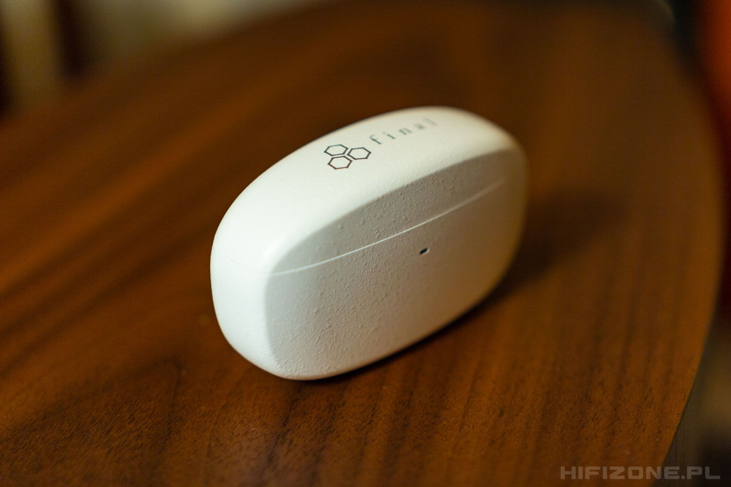 Porównując recenzowane słuchawki zarówno do wcześniejszego modelu Fianla, czyli EVA2020 – a już do Ag TWS04K w szczególności – dwa modele serii ZE posiadają znacznie mniejsze etui. Tutaj od razu należy się plus za to, że jego otwieranie nie wiąże się już z aż taką ekwilibrystyką, jak w przypadku EVA2020. A jeżeli zaś chodzi o wymiary (i także wagę), to tutaj mamy klasyczny przykład historii typu: „coś za coś”. Mniejsze wymiary i mniejsza waga oznaczają tutaj mniejszą pojemność wbudowanego w etui akumulatora. A ten ma w przypadku ZE2000 i ZE3000 pojemność tylko 300 mAh. Dla porównania: pojemność akumulatora w przypadku EVA2020 to 950 mAh, a w przypadku TWS04K to aż 2600 mAh. Jednakże, dla porównania, w przypadku słuchawek marki AG – etui do słuchawek jest po prostu ponad dwa razy większe, niż w nowych modelach Finala. Podejrzewam też, że układy elektroniczne w ZE2000 i ZE3000 są po prostu bardziej energooszczędne, bo o ile faktycznie etui w tych dwóch konkretnych modelach z serii ZE należy w porównaniu chociażby do TWS04K ładować częściej – to dalej sumaryczny czas pracy (biorąc pod uwagę naładowane do pełna słuchawki i naładowane do pełna etui) mieści się spokojnie w granicach normy. Czyli około 7 godzin na pełnym naładowaniu słuchawek i w okolicach 35 godzin na w pełni naładowanym etui.