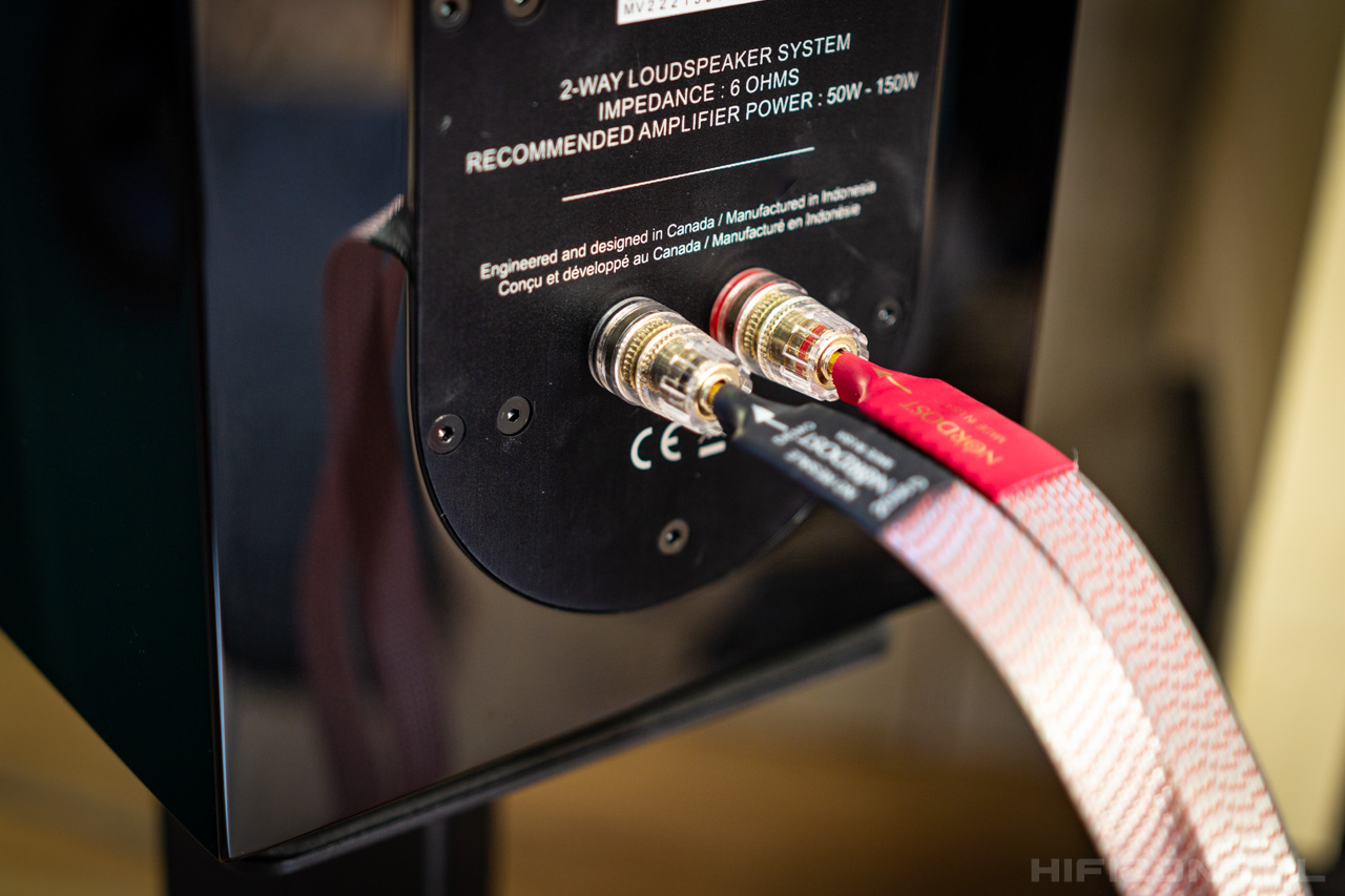 Tył kolumn zawiera metalowy panel, w którym zamocowano dobrej jakości, solidne gniazda głośnikowe, które umożliwią nam także podłączenie większych wtyków widłowych. Nad nim z kolei znalazł się oble zakończony otwór bass-refleks, do którego w zestawie dostajemy także zatyczki, dzięki którym Moon Voice 22 mogą także pracować w konfiguracji obudowy zamkniętej. O ile w kwestii wykonania nie można się do niczego przyczepić – to warto zwrócić uwagę na to, by przy przenoszeniu kolumn robić to albo w rękawiczkach, albo przy zakupie od razu zaopatrzyć się chociaż w dobrą mikrofibrę. Bo ceną, jaką tutaj płacimy za niezwykle elegancką błyszczącą powierzchnię jest fenomenalna wręcz zdolność kolumn do, mówiąc kolokwialnie, „łapania” odcisków palców i wszelkiego rodzaju brudu. Podsumowując zaś kwestie związane z wyglądem – producent dodaje mocowane na magnesy maskownice – aczkolwiek śmiem twierdzić, iż kolumny z Kanady zdecydowanie lepiej wyglądają bez nich. No ale gdyby ktoś jednak chciał zakryć przetworniki – to oczywiście może to zrobić.