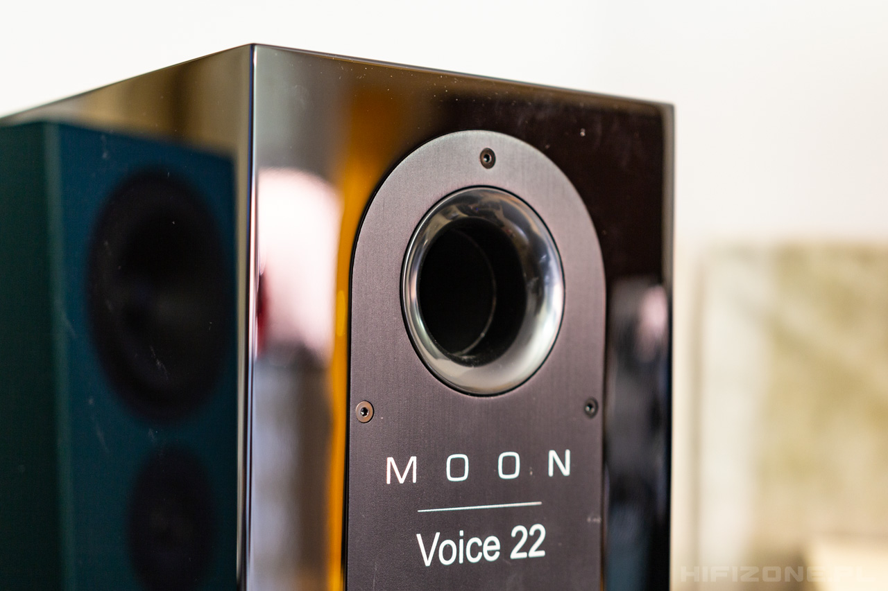 Moon postawił tutaj jednak na nieco bardziej klasyczne, nieco mniej popularne – co jednocześnie wcale nie oznacza, że gorsze – rozwiązania. I w ten oto sposób w najnowszych Voice 22 mamy do czynienia z zastosowaniem nieco miększych, bardziej stratnych materiałów membran. Głośnik nisko-średniotonowy posiada membranę z polipropylenu (zapewne z dodatkami), głośnik wysokotonowy zaś to tekstylna kopułka wysokotonowa z szerokim zawieszeniem. Ten ostatni przetwornik jest umieszczony w niewielkim falowodzie (czyli mówiąć po ludzku: tubce), który ma za zadanie nie tylko zgrać charakterystyki kierunkowe przetworników w okolicach częstotliwości podziału, ale także obniżyć zniekształcenia głośnika wysokotonowego w niższym zakresie jego pracy. Taka konfiguracja jest interesująca o tyle, że z jednej strony mamy dość „klasyczne” można by rzec materiały membran, a z drugiej zaś – Moon zastosował popularny ostatnio falowód, który stosowany jest przez wiele firm, czego przykładem mogą być chociażby recenzowane swego czasu na hifizone.pl fińskie kolumny Amphion Argon 3S.