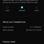 Dodatkową funkcją aplikacji MIY jest jeszcze regulacja czułości panela dotykowego. Jeżeli chodzi o jej funkcjonalność, to by było w zasadzie tyle. I nic w tym dziwnego, bo pamiętajmy, że to słuchawki bez aktywnej redukcji szumu, więc funkcjonalność aplikacji odzwierciedla tą słuchawek.