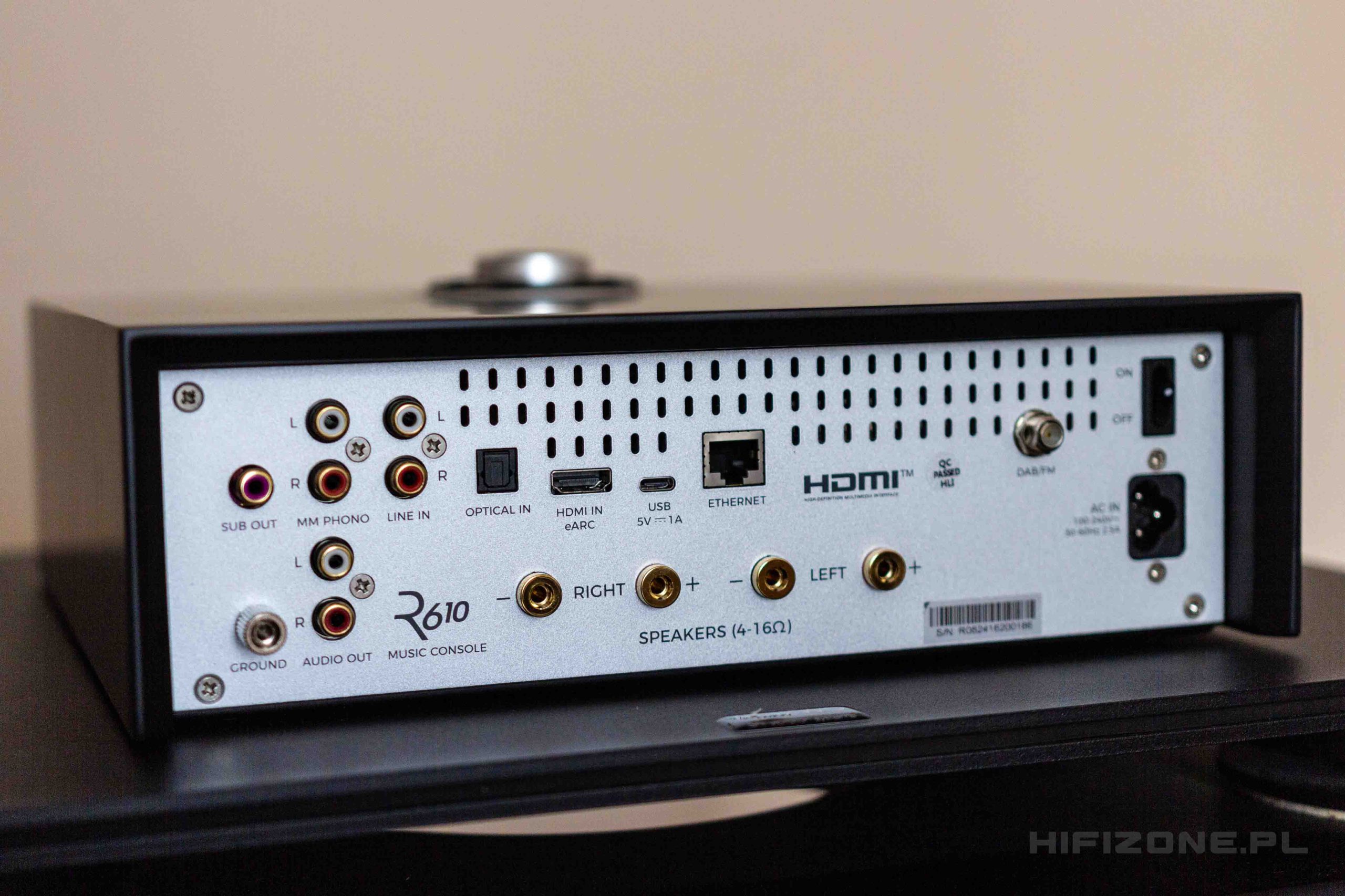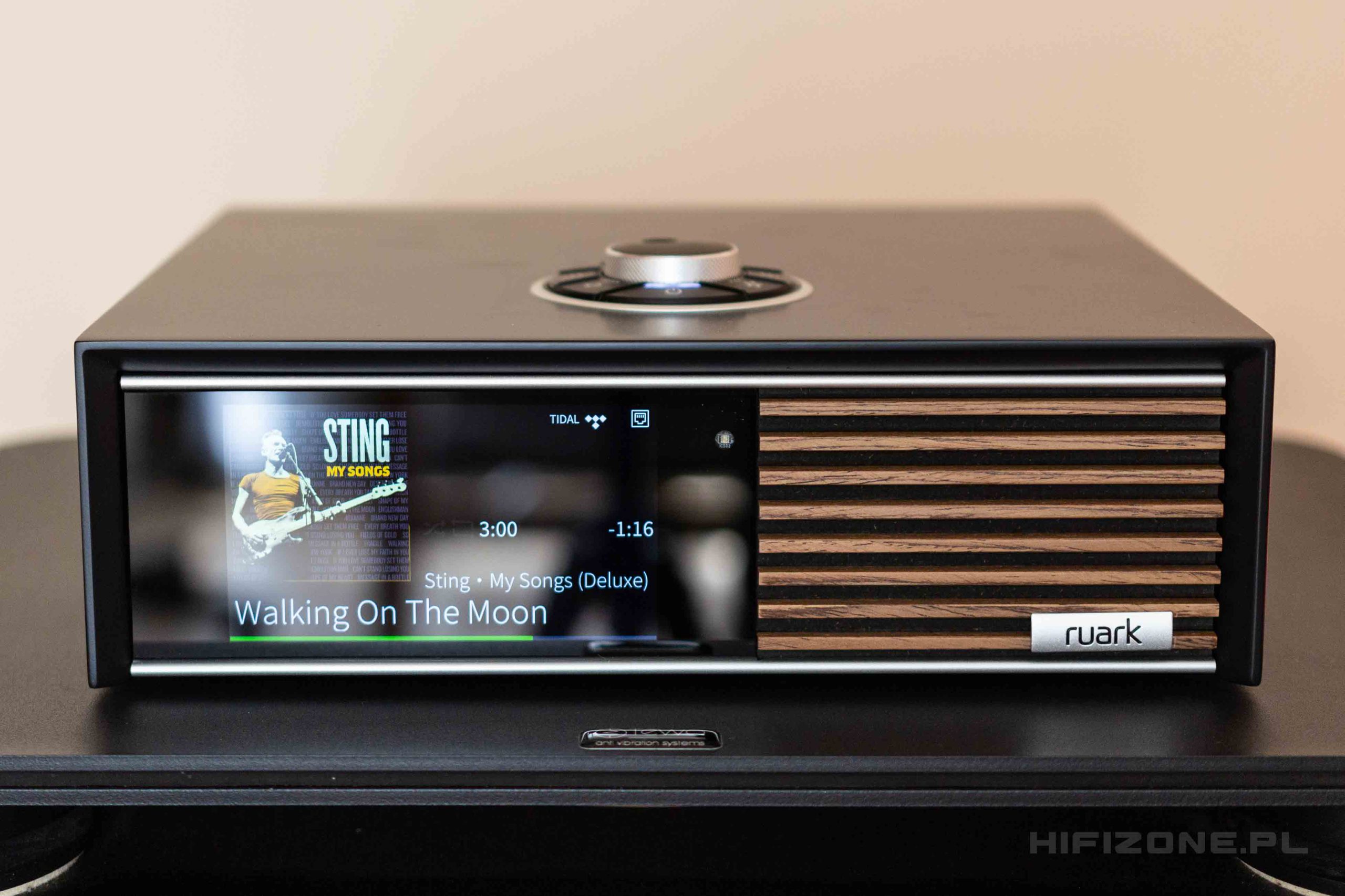 Sam wyświetlacz na urządzeniu jest dość czytelny, a menu – podobnie jak we wcześniej recenzowanych R410 i R810 – jest, że tak kolokwialnie ujmę, nieprzekombinowane. Mamy tutaj obsługę wszystkich głównych platform strumieniujących, łącznie ze wsparciem dla Tidal Connect, Spotify Connect, Apple AirPlay2 i Google Cast. Dodatkowo jest Bluetooth z aptX-HD oraz wejście HDMI wspietające ARC i eARC. Całości dopełnia tuner radiowy DAB/DAB+ i FM oraz wejście gramofonowe dla wkładek MM. Innymi słowy, mamy tutaj pełną funkcjonalność znaną z wcześniejszych „dużych” urządzeń Ruarka i pod tym akurat względem doprawdy trudno jest się do czegoś przyczepić. Jest nawet wejście optyczne oraz wyjście RCA dla Subwoofera.
