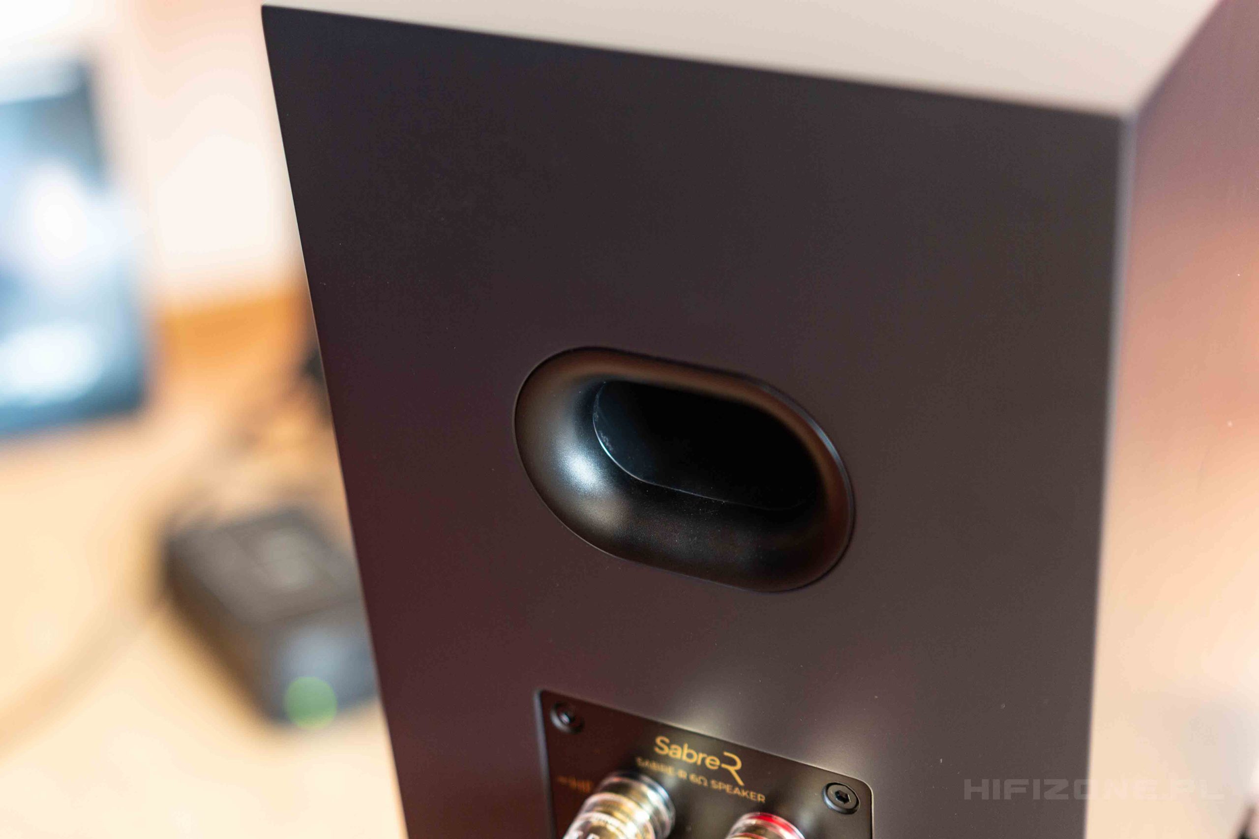 Jeżeli zaś przyjrzymy się bliżej samym Sabre-R, to – pomijając już dość specyficzną i spójną z pozostałą ofertą marki Ruark stylistykę – są to takie typowe można by rzec dwudrożne kolumny podstawkowe. Posiadają one obudowę w konfiguracji bass-refleks. Sam zaś otwór znajduje się z tyłu i ma dość nietypowy, bo owalny kształt. Podwójne gniazda głośnikowe są wysokiej jakości, umożliwiając bi-wiring. Obudowę głośnika wysokotonowego wyfrezowano tak, aby umieścić go bliżej nisko-średniotonowego uzyskując lepsze właściwości kierunkowe. To, na co chciałbym natomiast zwrócić uwagę, to fakt, że są to jedne z tych kolumn, które raczej powinny zagrać tak samo z maskownicami, jak i bez nich. A to ze względu na wyprofilowanie przedniej ścianki.